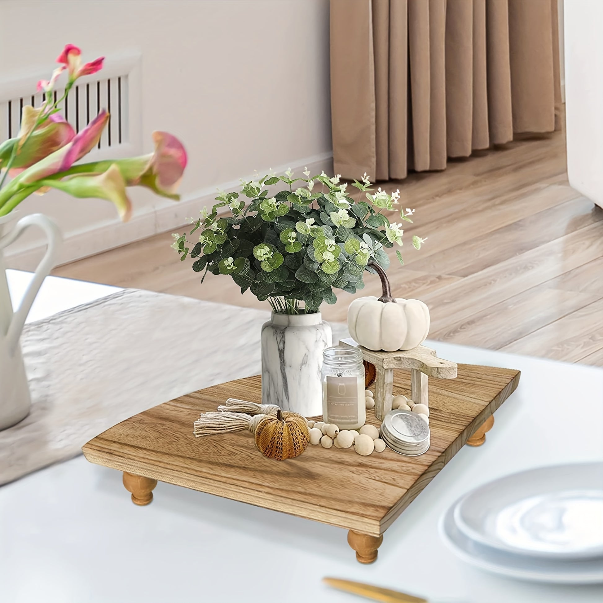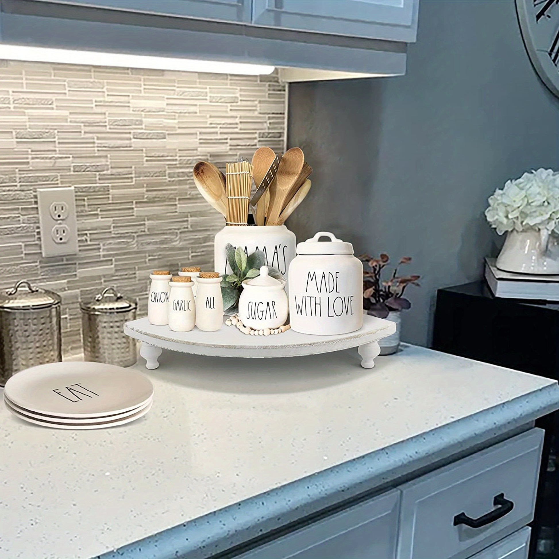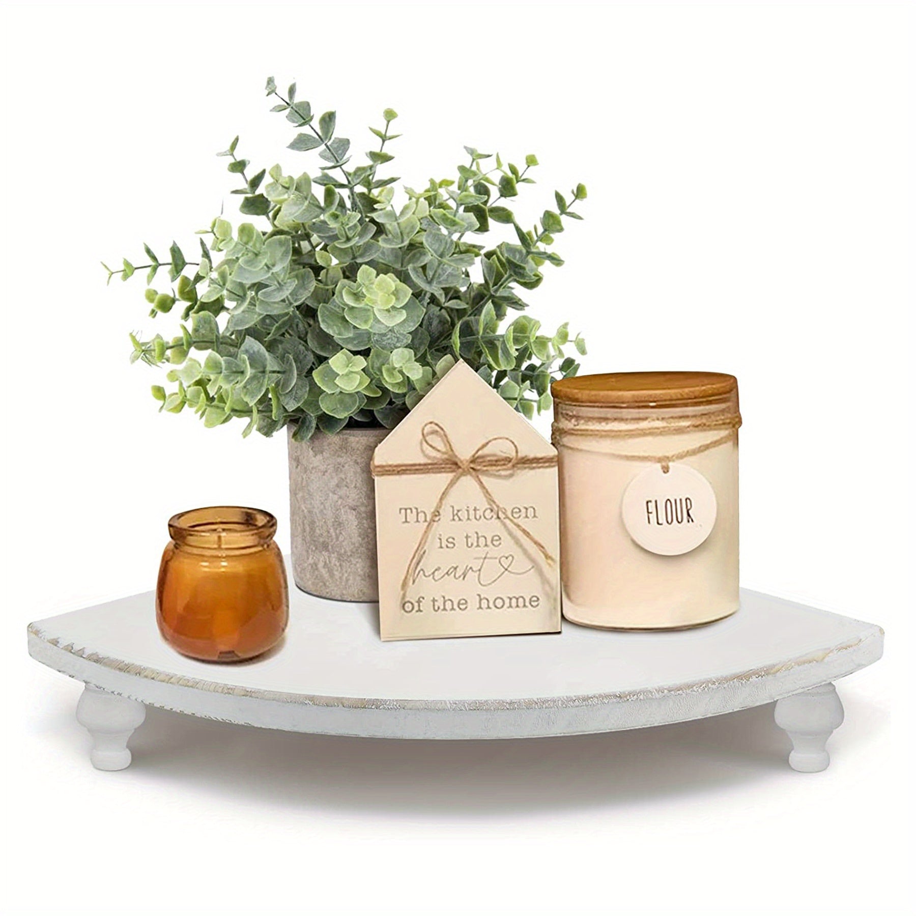 Rustic Farmhouse Wooden Corner Counter Shelf - Rustic Brown Pedestal Stand with 2 Shelves, Natural Wood Tabletop Display Riser for Kitchen, Bathroom, Dining Room Decor, Kitchen Shelf, Decorative Tray, Elegant Design, Corner S